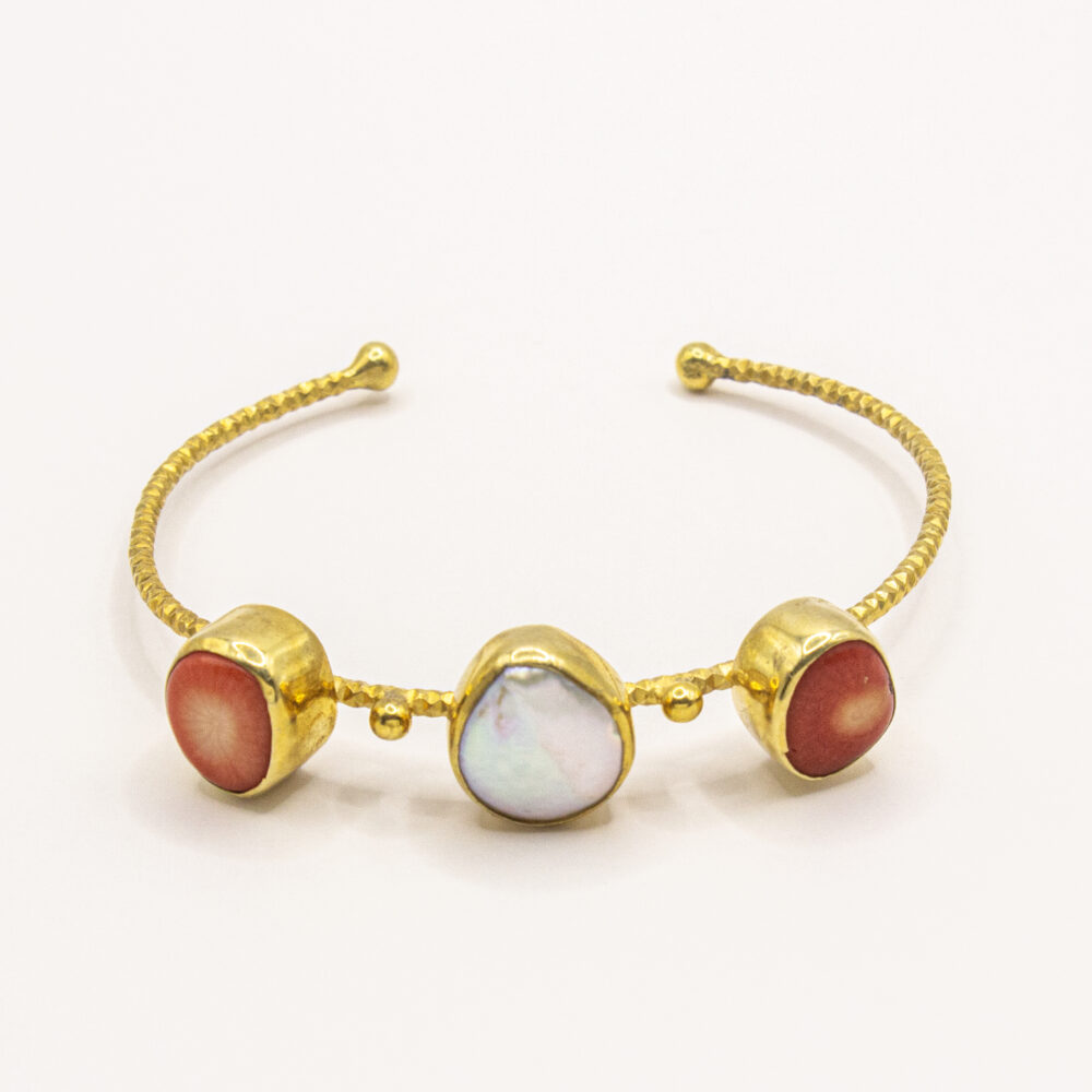 Coral & Pearl Harmony Cuff – Turkish 925 Silver Bracelet