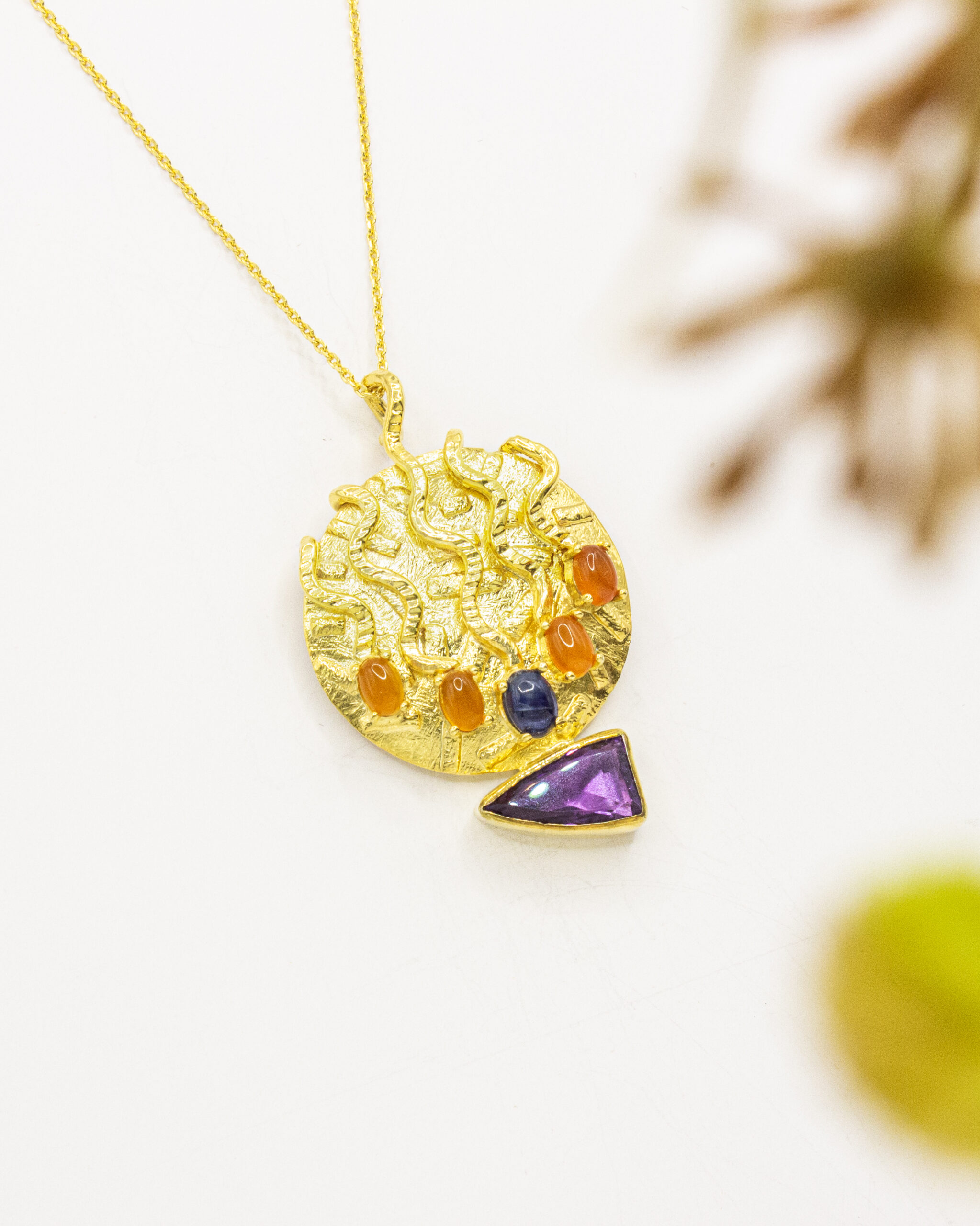 Finished with a high polish that highlights both the intricate silverwork and the vivid colors of the precious stones, this pendant is a testament to Turkish craftsmanship. Crafted from genuine 925 sterling silver, it’s an exceptional accessory for those who appreciate contemporary design infused with the beauty of natural gems.