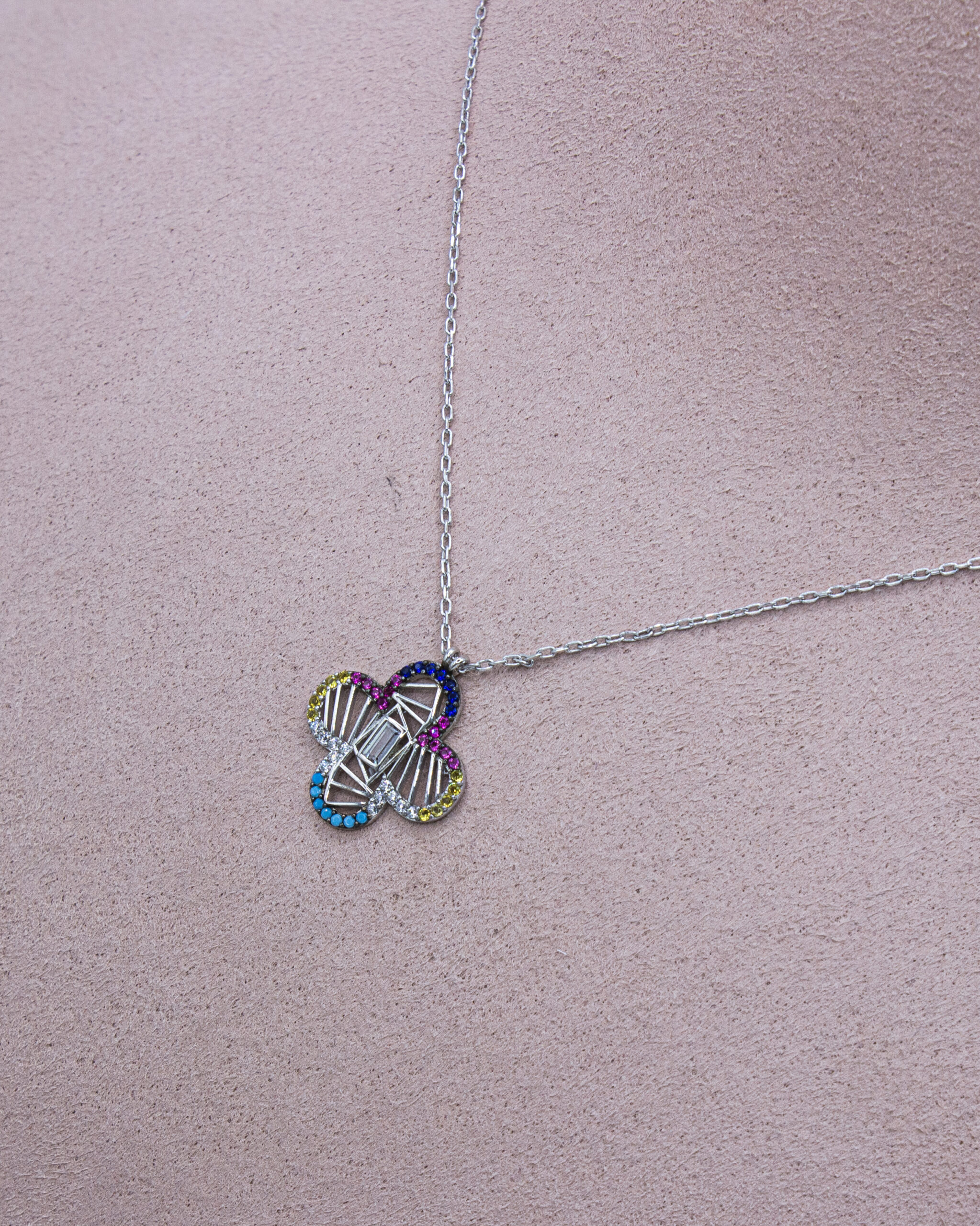 Colorful Flower with Crystal – Turkish 925 Silver Necklace
