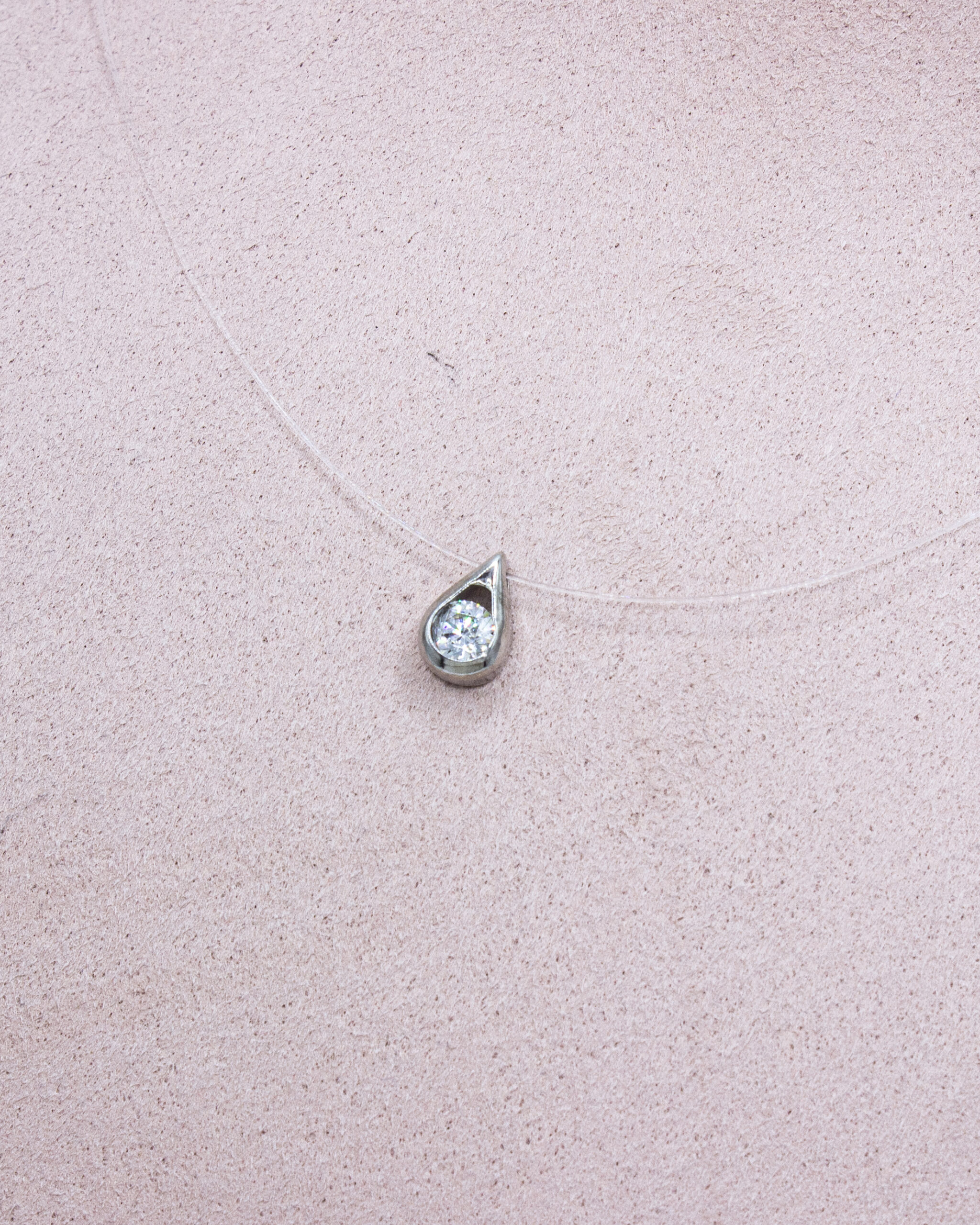 Crystal Drop – Turkish 925 Silver Necklace on Invisible Nylon Thread