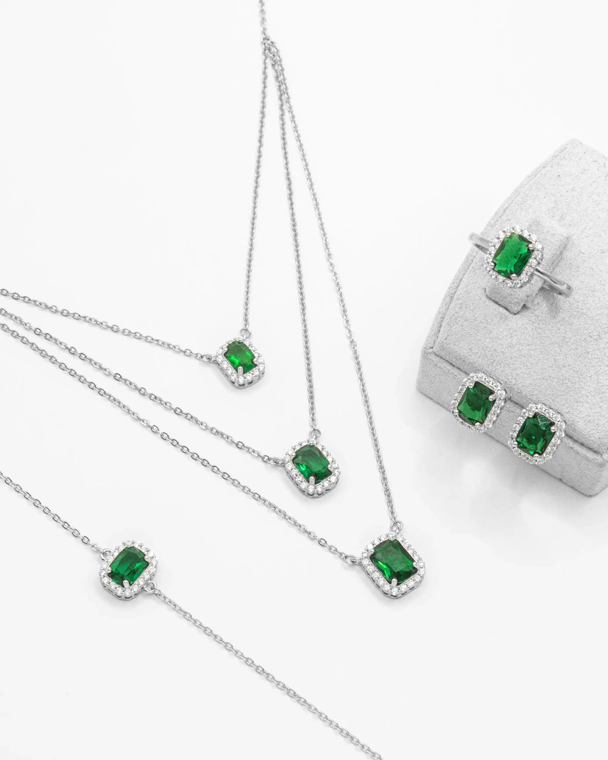 Emerald Radiance – Turkish 925 Silver Full Jewelry Set