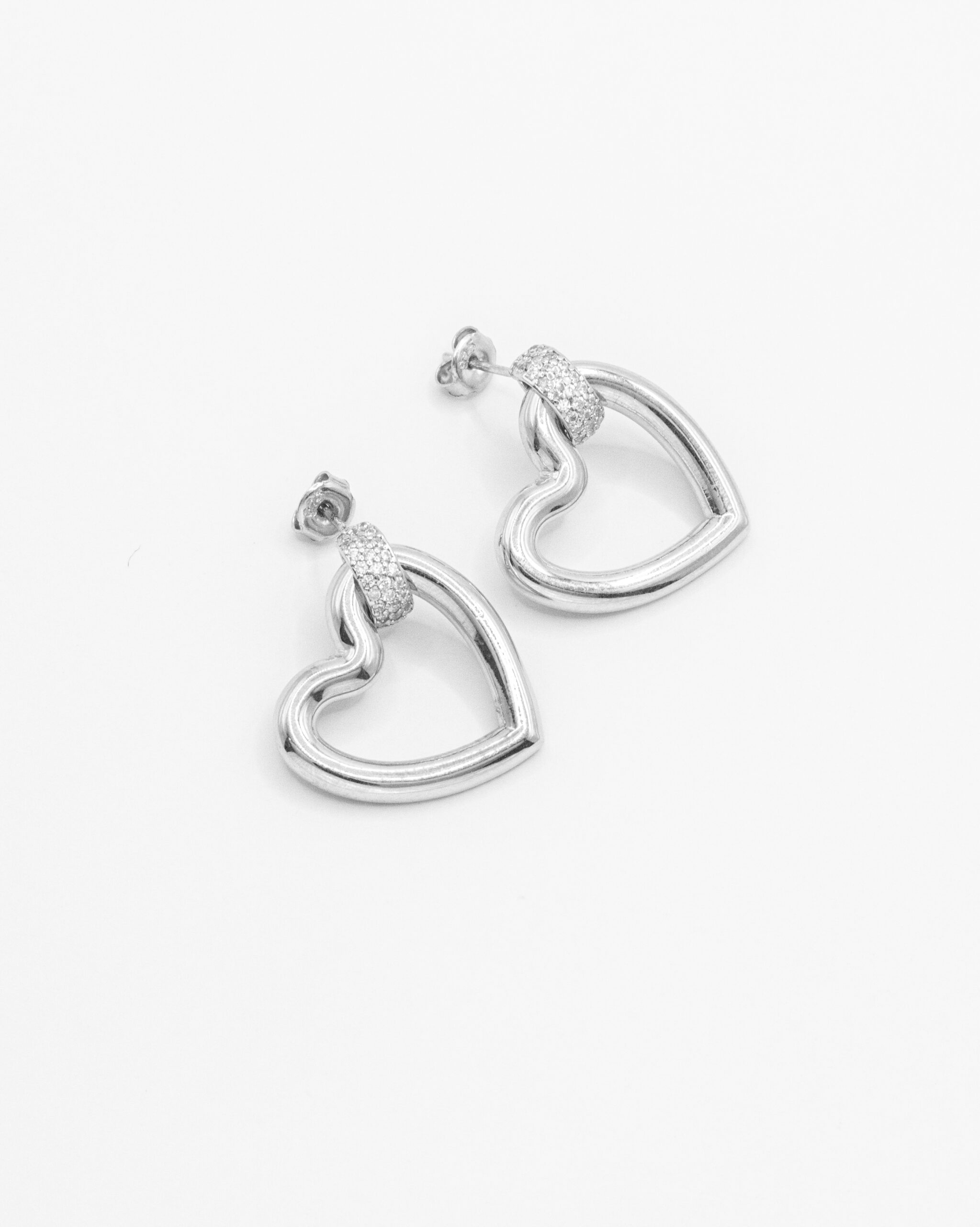 Design: Open-heart hoop earrings with pave-set crystal accents