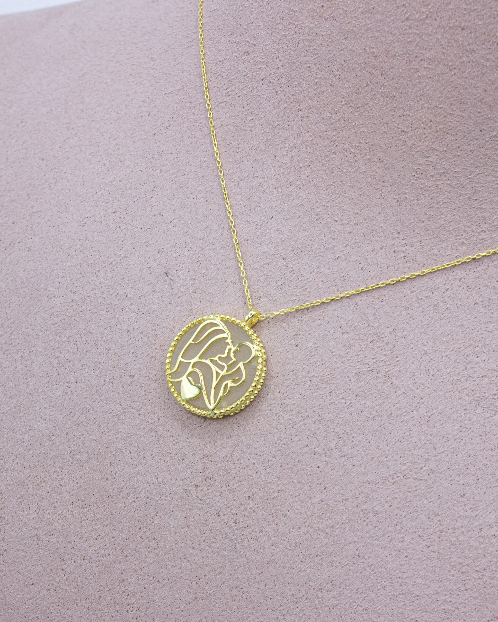 Celebrate the tender bond between a mother and her child with this exquisite necklace, handcrafted from premium Turkish 925 sterling silver. The pendant features a loving silhouette of a mom holding her baby, gently encased in a soft round frame of blush pink ceramic—symbolizing warmth, care, and unconditional love.