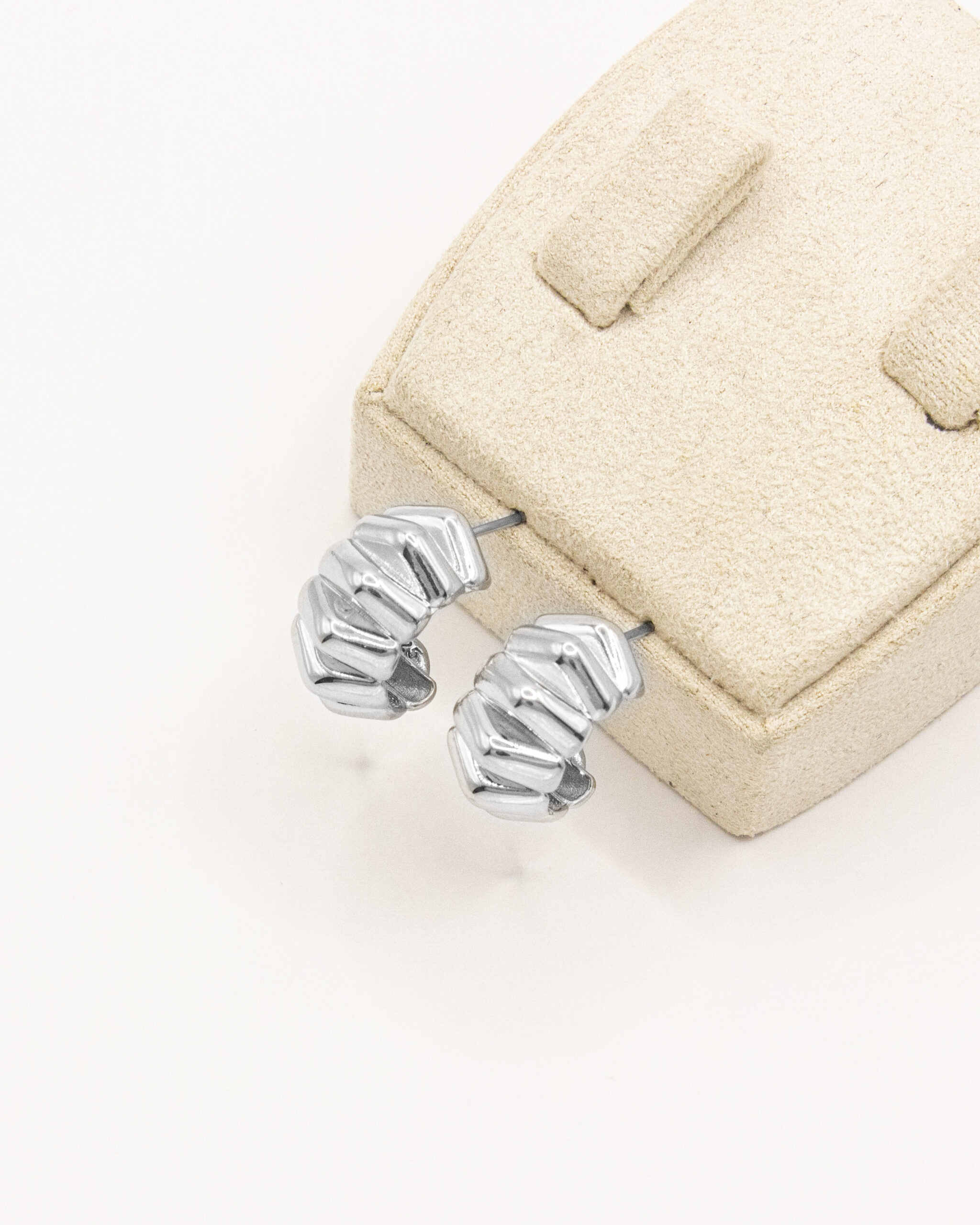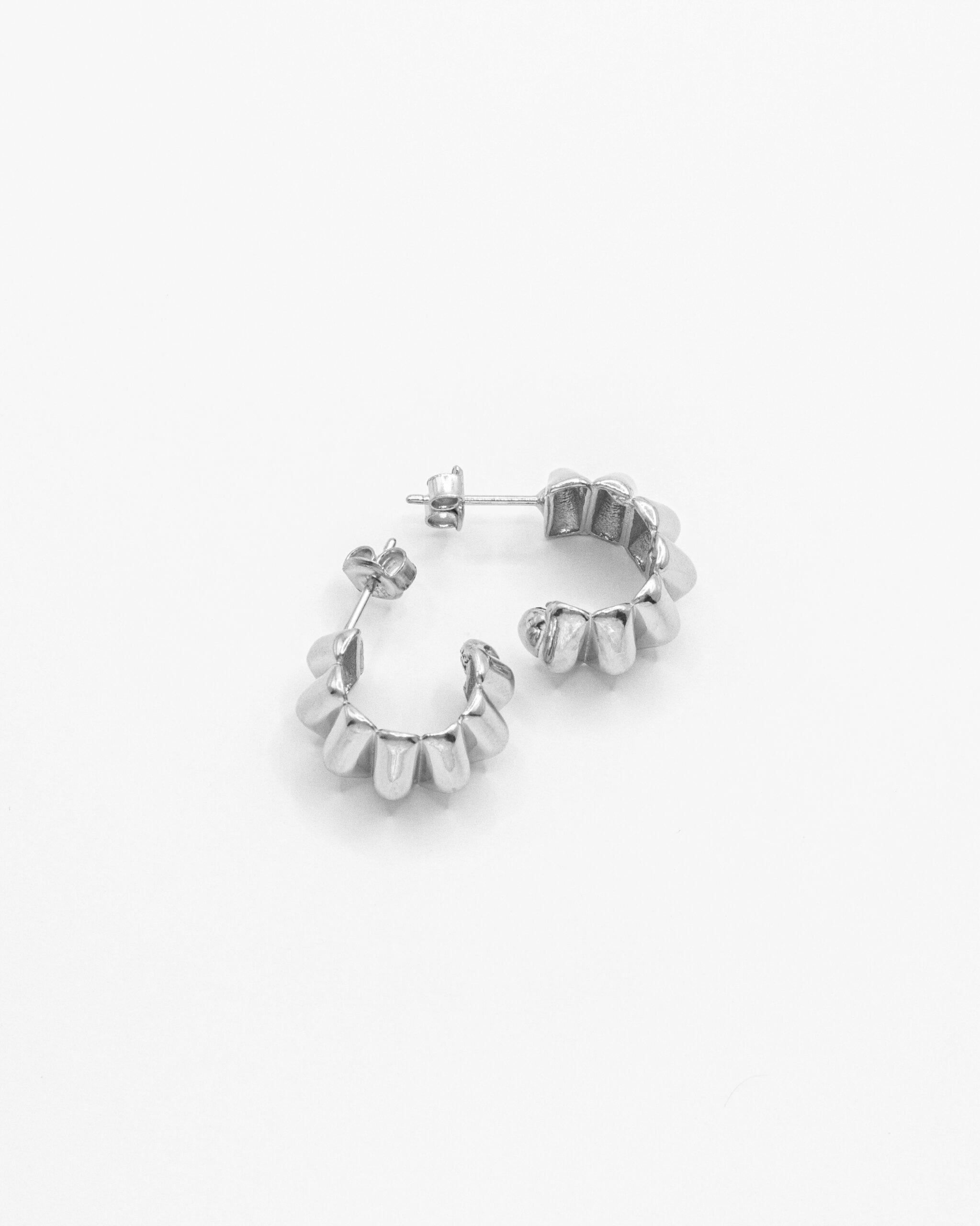 Their sculptural form creates depth and character, while the solid silver construction ensures durability and lasting shine. These earrings are a perfect blend of subtle artistry and contemporary flair.